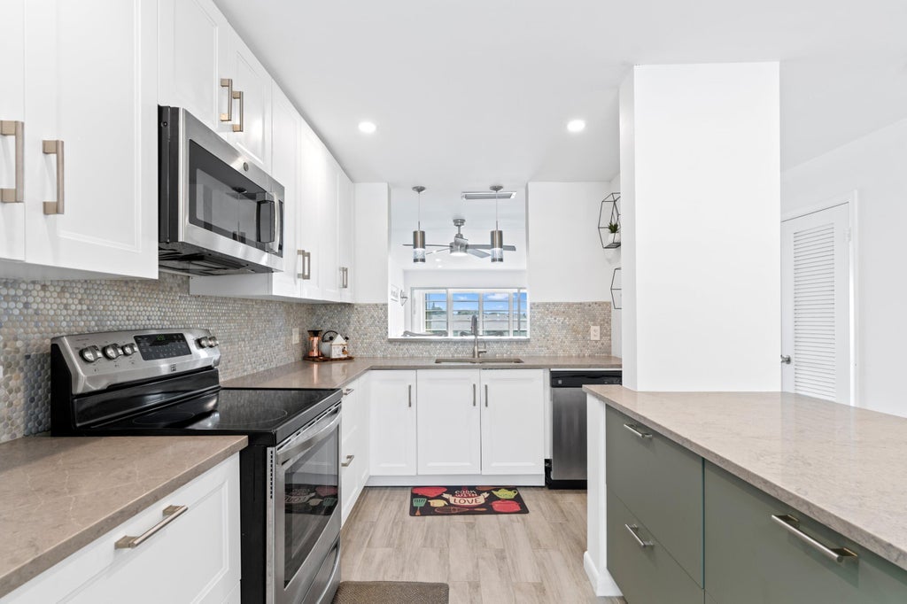 Welcome to your new sanctuary, a beautifully renovated lakefront oasis nestled within the vibrant and welcoming 55+ community of Delray Palm Greens. This exquisite 2-bedroom, 2-bathroom corner apartment offers not only a home but a lifestyle enriched by luxury and convenience.Upon entering, you'll be captivated by the bright and airy open floor plan, where natural light streams generously through the large windows, highlighting the modern elegance of the space. Every detail has been thoughtfully designed for comfort and style, making this a remarkably inviting place to call home.The heart of the home is undoubtedly the state-of-the-art kitchen, a chef's dream featuring an oversized island perfect for meal preparation and casual dining. The kitchen is adorned with sleek Quartz
