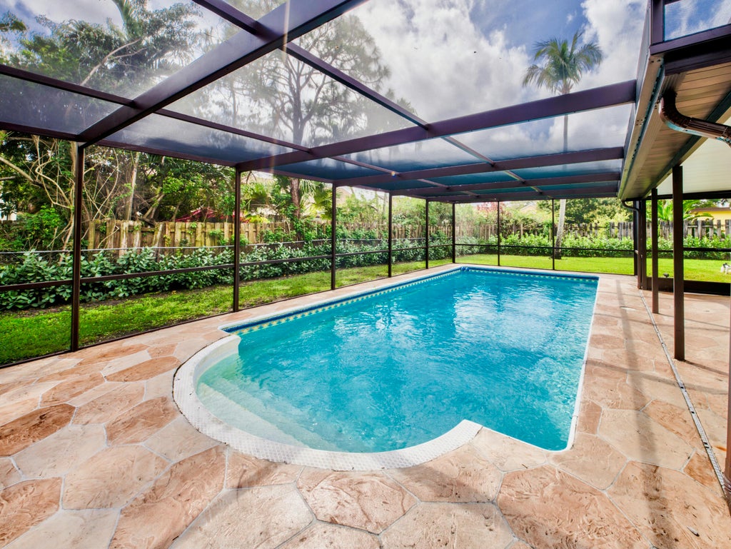 Stunning updated 4-bedroom, 2-bathroom single-family home for lease. A grand entrance welcomes you into the spacious family room, where soaring cathedral ceilings and an open-concept design create a seamless flow for everyday living.The primary suite is a true retreat, featuring a walk-in closet and a spa-like bathroom that exudes modern sophistication. Freshly painted and completely carpet-free, this home boasts a sleek gourmet kitchen with brand-new stainless steel appliances and brand-new hurricane-impact windows for ultimate peace of mind.Step outside to your private paradise, large backyard completed with an oversized saltwater pool and lush green space, perfect for entertaining. Located in an A+ rated school district in the heart of Boca Raton, this exceptional home won't last!