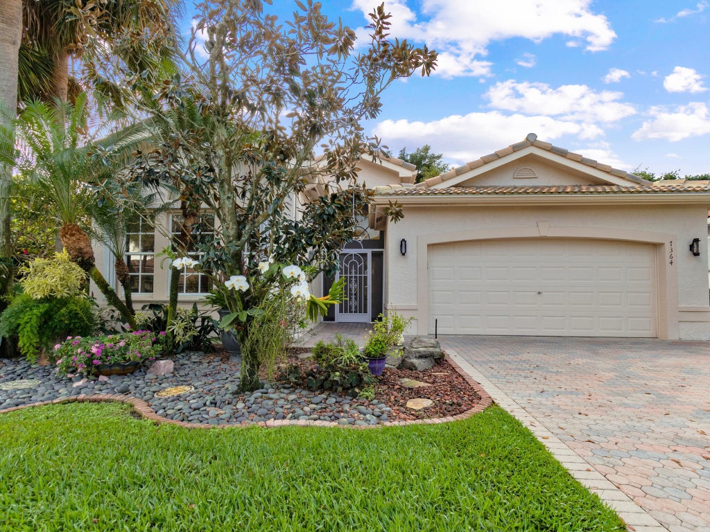 2022 ROOF! This well-loved 3 Bedroom (3rd room is being used as an office), 2 Bath Mediterranean is MOVE-IN READY. GLASS ENCLOSED Florida Room adds an additional 370sqft under air & can be used as a screened lanai. On entry you can't help but notice the beautiful MARBLE FLOORING throughout the main living area! BRAND NEW plush carpeting in the bedrooms. FRESHLY painted a neutral color throughout. Crown molding! Eat-in kitchen features wood cabinets & granite countertops. Large primary suite, his/her closets, wood cabinet vanities & shower tiled to the ceiling. NEW toilets in both bathrooms. Custom built-in in office w/ closet. LED recessed lighting, new fixtures & fan. Southern back. Private lot w/ plush landscaping & patio. Walking distance to the renovated clubhouse w/ BISTRO!