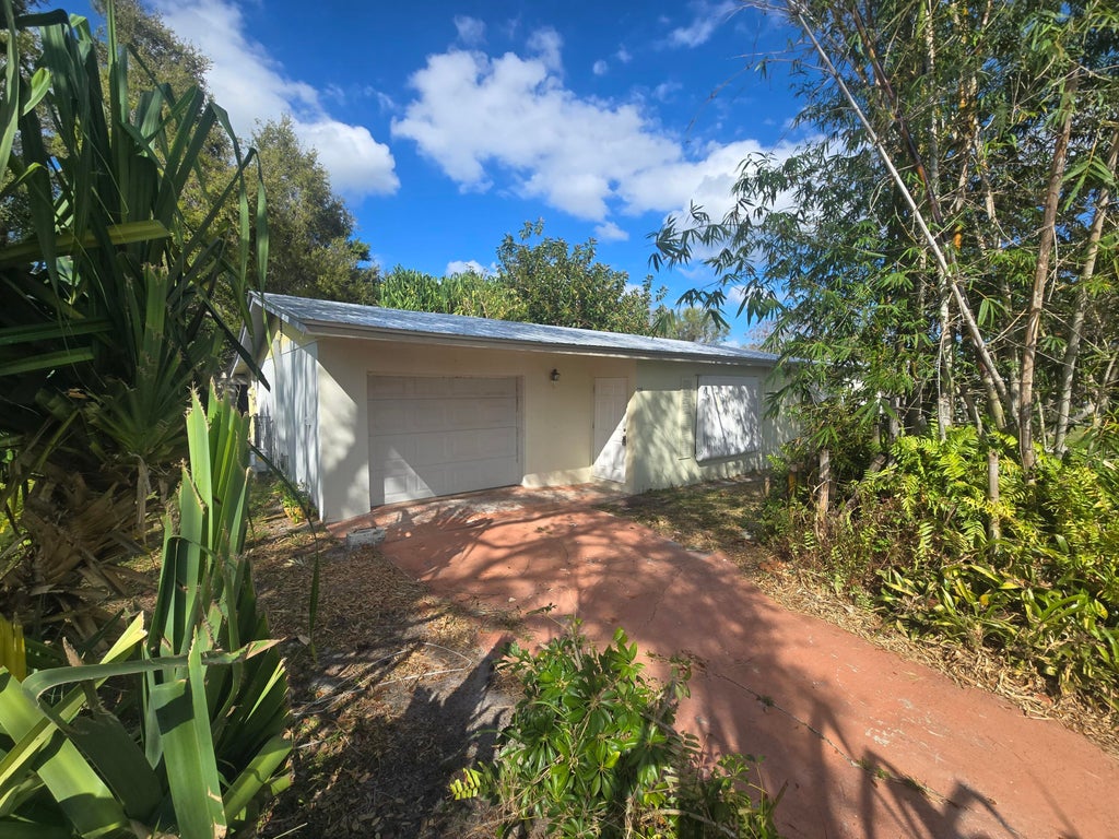 Excellent Opportunity to rehab this 2/1/1 in Beau Rivage East in Jensen Beach. No HOA fees or restrictions. 2018 Metal Roof. Impact Glass throughout in 2018. Sliders from the dining area bring you onto the Glassed-in patio is permitted and adds 180 sq ft of air conditioned living / entertaining space. Property needs kitchen cabinets and appliances. Additional open air patio area.