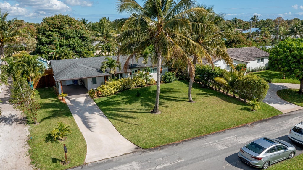 Enjoy Florida living at it's best in this beautiful 3 Bedroom, 2 Bathroom Pool Home with impact glass windows located on a quiet interior street. Enjoy your tropical landscaping and gazing at the custom mural under the covered outdoor patio while swimming in the freeform pool surrounded by a travertine tile deck. Home features updated kitchen and bathrooms, an inside laundry room and 1-car carport, tile and laminate flooring, soaking tub and separate shower in the master bathroom, plantation shutters, outdoor cedar wood shower, 10 X 8 storage shed. Only 2.8 miles to the nearest public beach and situated right in between downtown Boynton Beach and Delray Beach's popular Atlantic Avenue with trendy shops, restaurants and nightlife. Tankless water heater - 2024, New Pool - 2023, A/C - 2023