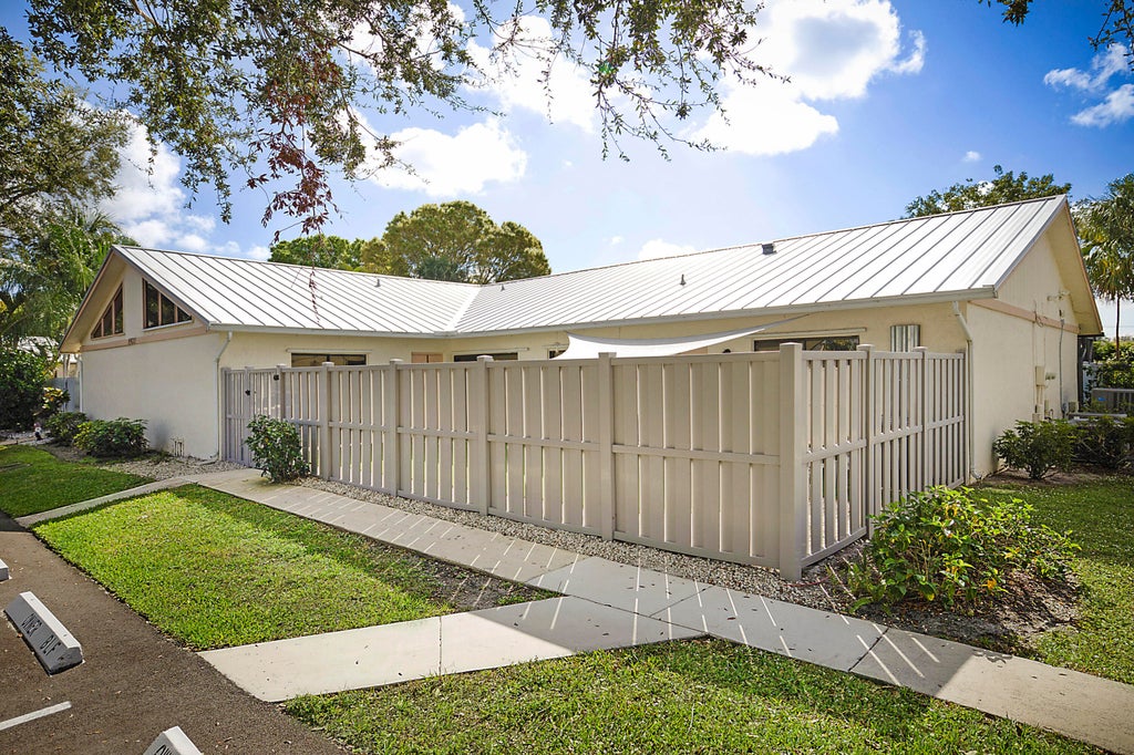 Updated villa centrally located in quiet pet friendly family community. Nicely renovated kitchen with quartz countertops is the showpiece of the home with ample cabinets and newer stainless appliances. The split floor plan gives the primary bedroom privacy with two additional bedrooms. Updated bathrooms with Bath Fitter tub and shower enclosures. New metal roof (2022).