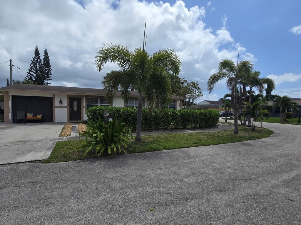 Lovely 3 Bedroom & 2 Bath home. Updated and open kitchen with granite counter top, wood cabinets, and SS appliances.. Ceramic tile and laminate floors - no carpet anywhere. Master Bedroom has huge 9' x 8' walk-in closet. Garage is air conditioned with it's own separate a/c unit. Fenced yard and corner lot. Wardrobe closet in third bedroom stays, making this a 3 BR home. Windows have storm shutters or impact glass. Only 3 blocks from Barracuda Bay Aquatic Complex -- the City of Riviera Beach's Water Park with Slides, Splash Zones, and Pool. It is estimated roof = 2004/2006; A/C = 2019; Electrical panel GE 1996;