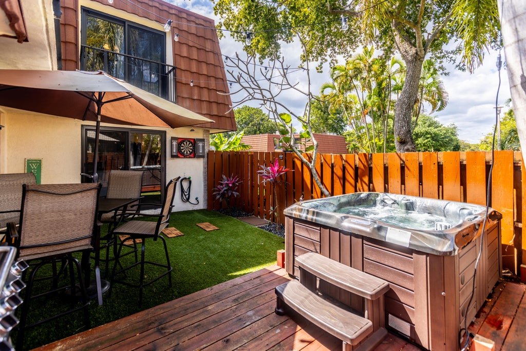 Look no further! This beautifully renovated 2 bedroom, 2.5 bathroom townhome is located in the highly desirable area of Delray Beach!This lovely home features impact doors and sliding doors, BRAND NEW ELECTRICAL PANEL, new AC unit, and luxury vinyl flooring throughout. And the best part? You have a fully fenced private courtyard with a HOT TUB, a perfect outdoor space for entertaining.Located in a well maintained, pet friendly community, featuring a large pool, tennis courts, and pickleball courts. You can have two pets up to 50 lbs, and the unit can be rented out immediately, once per year.Great location! Close to shopping, grocery stores, and only 8 minutes drive to the Ocean. Plus, it's just minutes from the famous Atlantic Avenue!Don't miss this great opportunity!