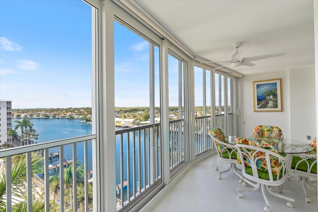 Amazing views from this 9th floor unit, 3 in from the intracoastal end! This allows you to take in the gorgeous sunsets every night! South exposure from the large enclosed balcony makes this unit bright and sunny all day. Highlights of this unit include COVERED parking, all new kitchen appliances 2024, AC, June 2024, no popcorn ceilings, new low hats lighting, unit completely painted in Dec. 2023, updated bathrooms, panel doors throughout, and tankless water heater. Washer & Dryer allowed to be installed. Active 55+ community, bocce ball, putting green, 2 pools, clubhouse, fitness room, billiards, grilling area, shuffleboard, docks, management and groundsmen on site. Deeded beach access