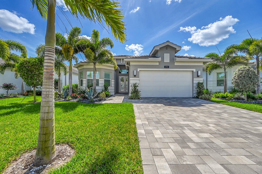 This 3 bed 3 full bath plus den/office pool home sits on a beautiful lake lot with direct fountain view. Barely lived in. This fully furnished home has been decorated with all high end finishes. Every window has blinds or plantation shutters. Primary bedroom and great room have remote control blinds. FULL HOUSE GENERATOR. Local artist has faux painted many accent walls. Built in wall unit with TV in great room. Custom furniture and lighting throughout, Toto toilets and mirrors to ceiling in 3 baths. Primary bath has extra cabinets. Closets are all fitted out. Epoxy garage floor. Central vacuum system. Etched glass front door. All impact windows and doors. Valencia Sound amenities include full service restaurant, pickleball, tennis,card rooms and pools. 24 hr manned gate. Move right in.