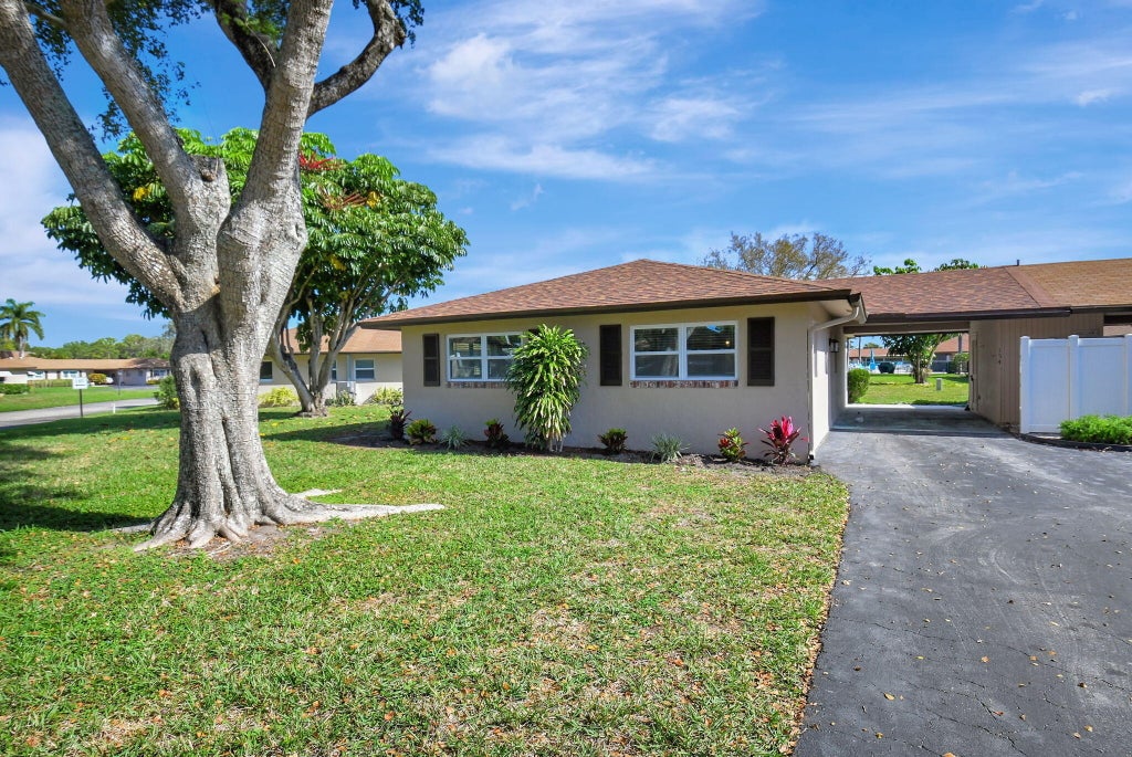 STUNNING FULLY UPDATED 2BR and 2 1/2 BA Villa in 55+ Country Manors - located a few minutes from Downtown Delray and the Beaches! Fabulous kitchen features brand new Stainless Appliances, Quartz Counters, White Shaker Cabinets, and Over Range Hood with added Pot Filler Faucet! Top finishes throughout! New flooring is a neutral vinyl luxury plank. Both bedrooms have attached baths with a guest powder room in the living area. Enclosed patio is tiled with new windows/screens (and A/C for the summer days). Sip on your morning coffee while enjoying a view of the gardens and pool! Complete Impact Windows. New Roof, New Electric Panel and New HWH! Features an attached carport with a large storage room and a New W/D. Carport beautifully refinished with stamped concrete!
