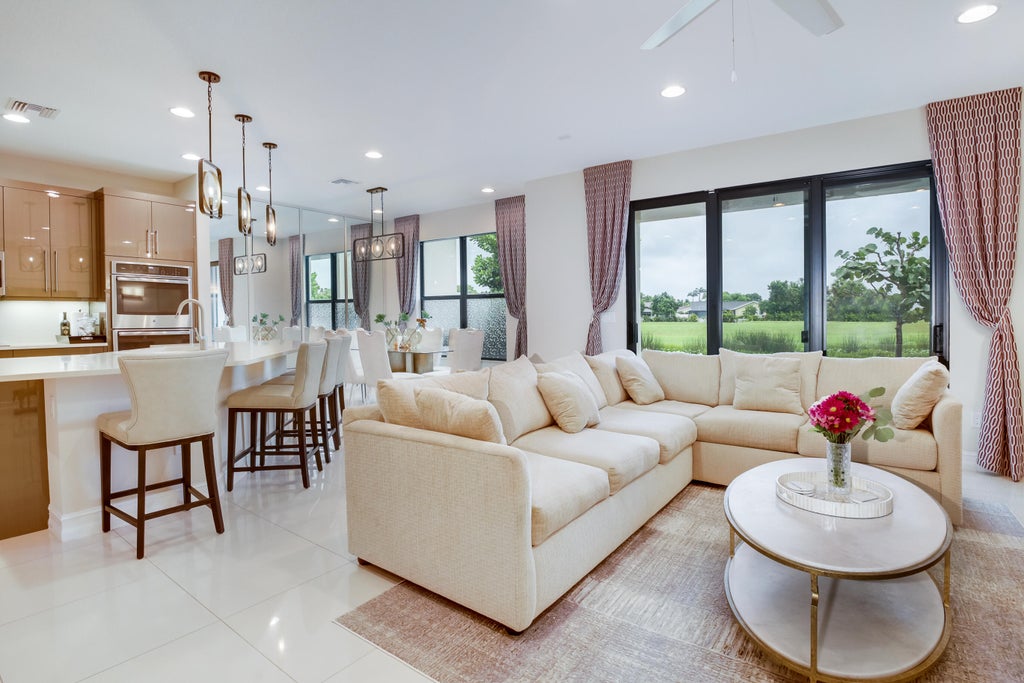 Luxury townhouse is barley used and comes fully furnished and ready for immediate occupancy. Turnkey builders model and comes with over $150,000 in upgrades and interior design and furnishings. Sprawling layout located on the lake/preserve + golf course views has western sunset exposure. Property comes storm ready with impact windows and doors. The gourmet kitchen has island center with seating and opens to the living room with entertainment center. Living room has water/golf views and sliding glass to the covered patio with privacy fence. 2 car garage + driveway. Gated 24hrs with luxury clubhouse has amenities like heated pool, spa, fitness center, yoga center, billiards. playground and so much more. Great location in west Boca surrounded by the best restaurant's, schools and shopping.