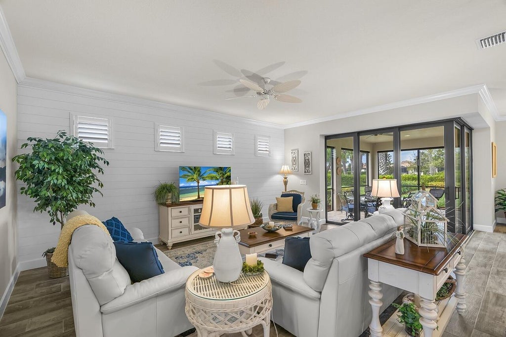 The one you have been waiting for! Beautifully well maintained & appointed w/ all the high value $ owner UPGRADES! Summerwood 2019 Built, 2 bed, 2 bath, 1 Flex/Den, 2 Car epoxy garage w/ extended golf cart parking. Impact windows. Zero corner cafe sliding doors, patio extension w/ surround sound system! Enlarged owner's walk in closet, spa-like Roman shower, plantation shutters, Den/office w/ tile. Kitchen upgrades that would make HGTV Jealous! Dentil molding, EXTD island, 42''gourmet cabinets, pullouts, quartz countertops w/bullnose, kitchen backsplash, built-in appliances. Brand new KitchenAid fridge. Large laundry room w/ cabinets & sink. Porcelain wood look tile main areas! Resort Style Divosta Homes Community- Socially active w/all the amenities. Resort POOL, Tennis, Fitness Ctr ETC