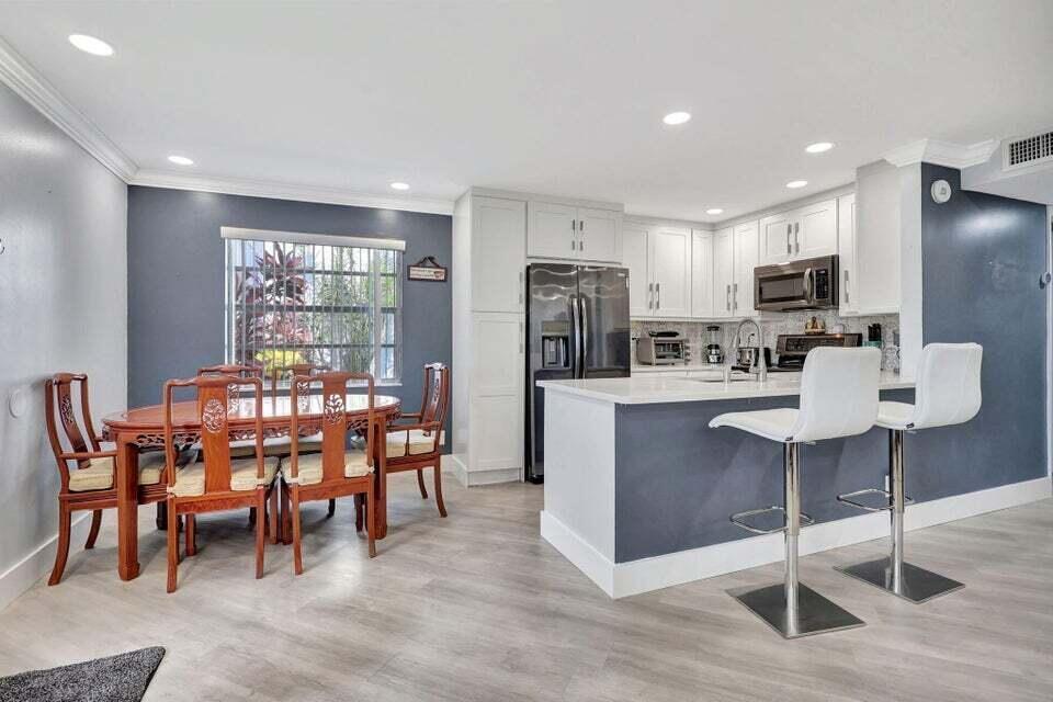 Beautiful remodeled 1st fl corner unit. Living room window faces 1 of 2 golf courses. Newer ceiling with uplighting thru out condo. Newer kitchen with custom cabinets for extra storage and quartz counter top. Newer stainless steel appliances. Remodeled bathrooms. Extra closet added in Master bathroom. State of the art showers in both baths. Side patio screened for that bonus room. Kings Point is a resort sstyle community with 2 golf courses (par 3 & executive) designed by Bobby Trent Jones. Tennis, Pickle Ball, indoor/outdoor heated pools, fitness centers, library, art room. 3 multi-million dollar clubhouses with. On site cafe and Bistro. Buses daily to shopping.6 miles to ocean and historis Delray Bch.