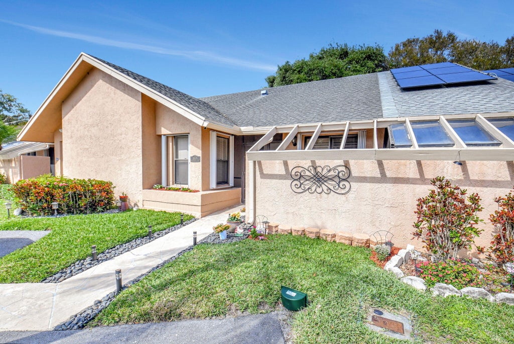 Must RSVP with listing agent for open house Saturday May 3 NO EXCEPTIONS. Great opportunity in 55+ Waterberry community of Boca Chase. Enjoy Peace and Quiet on your back patio with water views! If privacy is important to you, this property back up to Stonebridge CC so you won't have to worry about development behind you. This is a beautifully maintained and kept villa with private front and back patios. This home features a Split bedroom floor plan each with its own bath and generous closet space, back bed has slider that opens to your peaceful enclosed patio with water view. Living & dining are combined includes a vaulted ceiling. Utility room located just off Living area with Washer/dryer and more storage.