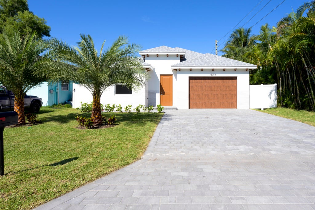 BRAND NEW 2024 CBS CONSTRUCTION - This bright and beautiful open-concept home offers 3 bedrooms, 2 bathrooms, 1.5-car garage, and underground utilities. Featuring a charming stone facade, impact windows and doors, 9'9'' ceilings and 8' interior doors. The exterior has new landscaping with irrigation, a paved driveway, and a fully fenced backyard. The floors are a contemporary grey wood-look porcelain tile throughout. Leading to the great room is the spacious kitchen featuring Samsung appliances, including a touch-screen refrigerator, white cabinets, a stunning mosaic backsplash, Quartz countertops, and a kitchen island - perfect for entertaining! The Master Suite offers his-and-hers walk-in closets - see Supplemental Remarks!