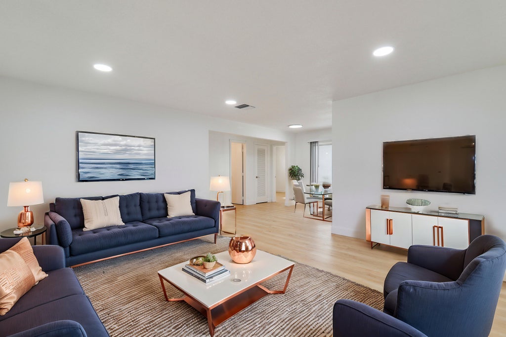 Brand new 2025 Roof, 2021 AC. This freshly renovated home is in the beautiful 55+ community of Leisureville. The features a updated kitchen and bathroom, updated single car garage, new floors/baseboards all throughout, fresh paint inside and out. Other features include a large patio along with a sidewalk to a large concrete patio slab. This is an amazing community to be a part of. It is located off Boynton Beach Boulevard just minutes to the beach, grocery stores, restaurants, hospitals, and main highways.The Leisureville community offers a free golf course, two clubhouses with swimming pools, shuffleboard and activities all at no extra charge. The community is safe and quiet and offers a very low monthly HOA of only $185 per month