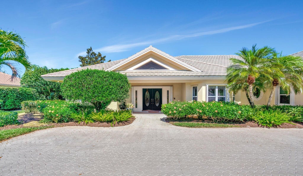 Nestled on a peaceful cul-de-sac in the prestigious Mariner Sands Country Club, this stunning concrete block home offers both privacy and breathtaking golf course views. Designed for comfort and convenience, it features impact windows and doors, along with a whole-house generator for added peace of mind.Inside, soaring cathedral ceilings enhance the spacious family room, which seamlessly flows into a bright sunroom overlooking the lush greens. The split floor plan includes a generous office, a formal dining room, and a well-appointed kitchen perfect for entertaining. The expansive primary suite boasts two walk-in closets, a luxurious en-suite with a soaking tub, double vanity, and a walk-in shower. Additional highlights include a large