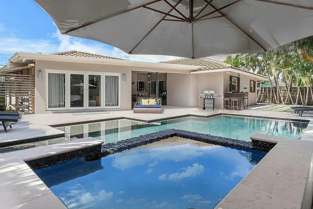 Experience luxury and comfort with this beautifully furnished 4 BR home nestled on a cul-de-sac in the highly sought-after East Boca Raton waterfront community of Bel Marra! Boasting a spacious open concept layout with modern design and high-end finishes throughout. Highlights include an oversized gourmet dream kitchen, breakfast bar, wine fridge, ample counter and storage space, Split BR plan, Luxury vinyl wood floors throughout, Expansive Primary BR with en suite features a sitting area, walk-in closet, separate tub and shower, overlooks and leads out to a Very private outdoor oasis featuring a covered patio for outdoor dining, sparkling salt water heated pool and spa, lush landscaping and a Sprawling fully fenced in back yard. Minutes to beach, shopping, dining. No HOA. Quick Move-In!