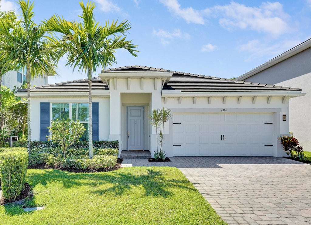 Built in 2020, this beautiful 4-bedroom, 3-bathroom home is located in the gated community of Banyan Bay, located on a quiet cul-de-sac, and backs up to a preserve and pond. It offers tile throughout, impact windows, and a tri-split, open floorplan. The bright, white kitchen is a true highlight, while tray ceilings add a touch of elegance. Enjoy the large fenced-in yard with plenty of room for a pool and a covered patio for outdoor entertaining. This move-in-ready home is ideal for those seeking function, space, and peace of mind with a newer build. The community of Banyan Bay offers a gorgeous clubhouse, state-of-the-art gym, a beautiful pool, and a kayak/paddleboard launch area and is located a couple of minutes from I-95.