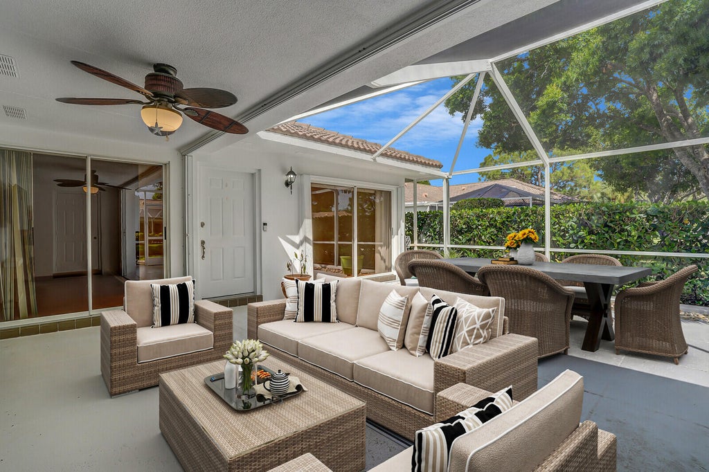 Back on Market! Meticulously maintained Divosta-built villa in the heart of Palm Beach Gardens offering both comfort and convenience. Step through your private courtyard patio into a thoughtfully designed, single-story home featuring a split double-primary suite layout with a neutral color palette. Your updated open kitchen boasts granite countertops, brushed nickel finishes, and SS appliances, flowing seamlessly into the spacious great room. Sliding glass doors in every room bring in the natural light and open to your lush courtyard, for relaxing or entertaining. LG front-load washer and dryer and accordion hurricane shutters add extra peace of mind. HOA covers building insurance, cable, exterior maintenance, and community pool. Located minutes from shops, restaurants and more
