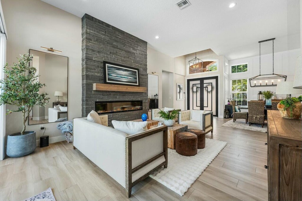 Welcome to 8897 Raven Rock Ct, a truly one-of-a-kind luxury home in Canyon Lakes. This exquisitely upgraded 5-bedroom, 3-bathroom residence offers unparalleled design, functionality, and resort-style outdoor living. Inside, wood-look porcelain tile flows throughout, complementing custom accent walls and designer light fixtures from Restoration Hardware and Pottery Barn. The gourmet kitchen, refreshed in 2021, features quartz countertops, a stylish backsplash, and premium appliances, while the renovated laundry room boasts a high-end GE washer and dryer. The bathrooms have been thoughtfully reimagined with spa-like finishes, framed mirrors, and a striking ceiling tub filler in the primary suite, which also includes a custom-built closet system and a fireplace feature wall.