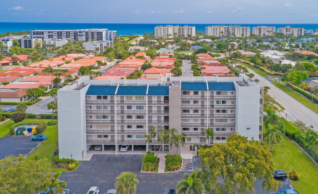 Coastal Living at Its Finest - Steps from Jupiter Beach! 🌊🏡 Discover the perfect blend of beachside charm and modern elegance in this beautifully updated 2-bedroom, 2-bathroom condo in the sought-after Jupiter Ocean & Racquet Club. **Just three blocks from the ocean, this condo offers the ideal Florida lifestyle with easy access to beaches, dining, shopping, and entertainment.**Enjoy partial ocean views from the expansive 20' covered balcony, perfect for watching stunning sunrises and feeling the ocean breeze. **Inside, the renovated kitchen boasts quartz countertops, stainless steel appliances, wood cabinetry, and a stylish glass tile backsplash. **The condo features large neutral tile flooring throughout, LED lighting, plantation shutters, and custom closets. The prim