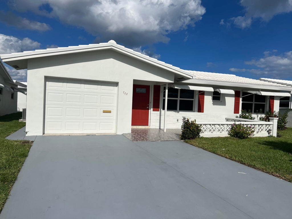 Wow!! Beautiful , charming one story single family home. 2 bedroom , 2 baths plus family room and large enclosed florida room / patio. This home is very spacious and offers lots of upgraded features throughout. Open floor plan , lovely kitchen with like new SS appliances and granite counter tops. Beautifully renovated bathrooms, walk in closets. Also impact glass One car garage with full size washer and dryer. No carpeting , all tile throughout the house. Owner will consider a long term lease. Very active community, membership free living that offers a wonderful clubhouse, fitness, pools, sauna, golf course, tennis and so much more. Great location, close to shopping, night life, restaurants and beaches. All pets considered. Owner has no plans on Selling once you make this your home!