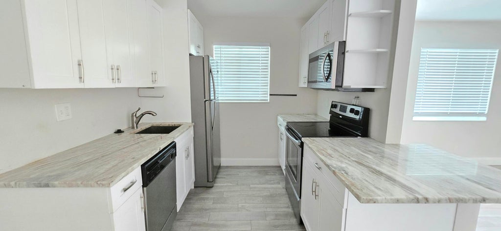 Beautifully remodeled one bedroom condo in Downtown Boynton Beach close to restaurants, shopping & public beach. Walk to new town center, amphitheater, park & estivals on ocean ave. Enjoy restaurants on the water Banana Boat & 2 Georges. Remodeled kitchen, marble counters, extended bar & stainless appliances. Plank style flooring. Upgraded bathroom vanity, tub & additional vanity area in bedroom. Large bedroom with walk in closet overlooking greenspace. Covered & screened balcony off the bedroom. Washer & Dryer inside condo. Second floor condo/top floor. Pet friendly.