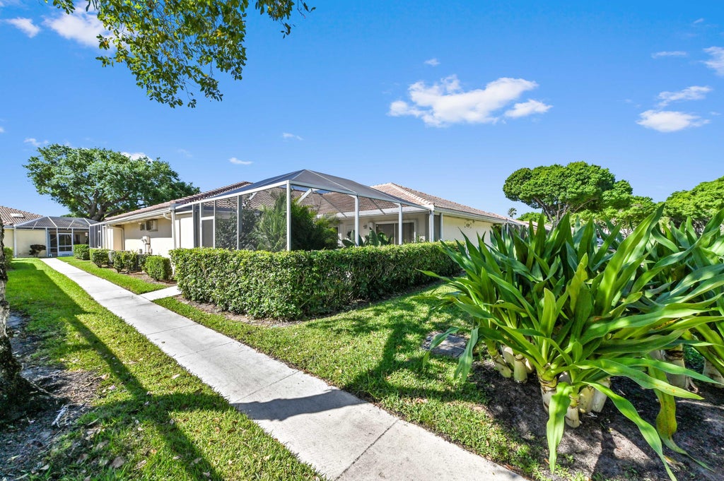 This immaculate villa is a true gem, exuding model-like perfection in a peaceful, private community. Designed with a desirable split floor plan, this residence features soaring 12-foot vaulted ceilings and tile flooring throughout the main living areas, creating an open and airy ambiance. The galley-style kitchen offers convenient access to the front patio, while accordion shutters provide added security and peace of mind.