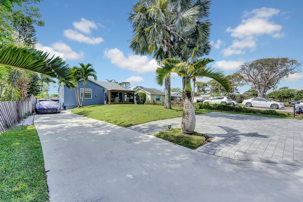 Phenomenal opportunity! This beautifully renovated home features a long driveway with additional parking for at least 7 vehicles, a peaceful screened-in front patio, and a private deck off the master bedroom. Inside, enjoy high vaulted ceilings with recessed lighting and a modern touch throughout. The manicured lawn is complemented by pavers on both sides of the home and in half of the backyard, perfect for entertaining. The outdoor space includes a firepit area, above-ground pool, and a secondary kitchen with a sink and mini fridge. For privacy, the property is enclosed with white fencing, and double gate in the back to drive your golf cart!Major updates include a 2017 roof and a 2022 AC. Plus, NO HOA, yet the subdivision offers fantastic amenities: a fishing pond, playground