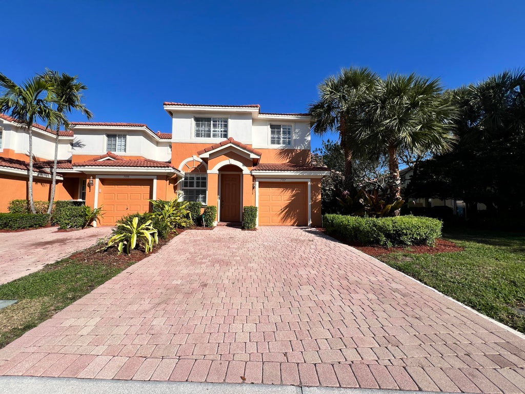 Experience waterfront living in this stunning 3-bedroom, 2 and a half bathroom townhouse with panoramic water views from every window. The home has been freshly painted with new wood vinyl floors. Plus hurricane impact windows and doors throughout. You'll love having the privacy and space of a corner lot. Theres ample parking space in the double car driveway plus a single car garage. The community has a gorgeous oversized pool, gated playground across the street and tennis courts. Zoned for all great schools! Pets are not permitted. Come check it out today!