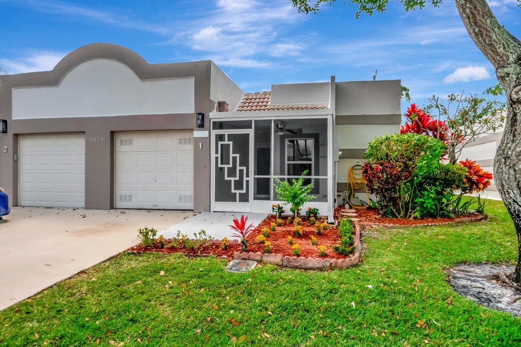 2/2 CORNER Villa, 1 car garage, front patio, updated kitchen, granite, stainless appliances, new wood look floor throughout, freshly painted, new hurricane impact windows, new front and back door, new led lights, new led fans, newly renovated master bathroom with barn door, newly renovated main bathroom, new electric panel, roof 11/24, no one is behind you, just bring your furniture and start to enjoy your life in Town Villas !!! Short walk to active clubhouse with heated pool, tennis and bocce courts, game and exercise rooms,etc.. Close to shopping,restaurants,and entertainment. This magnificent home is a must see !!!