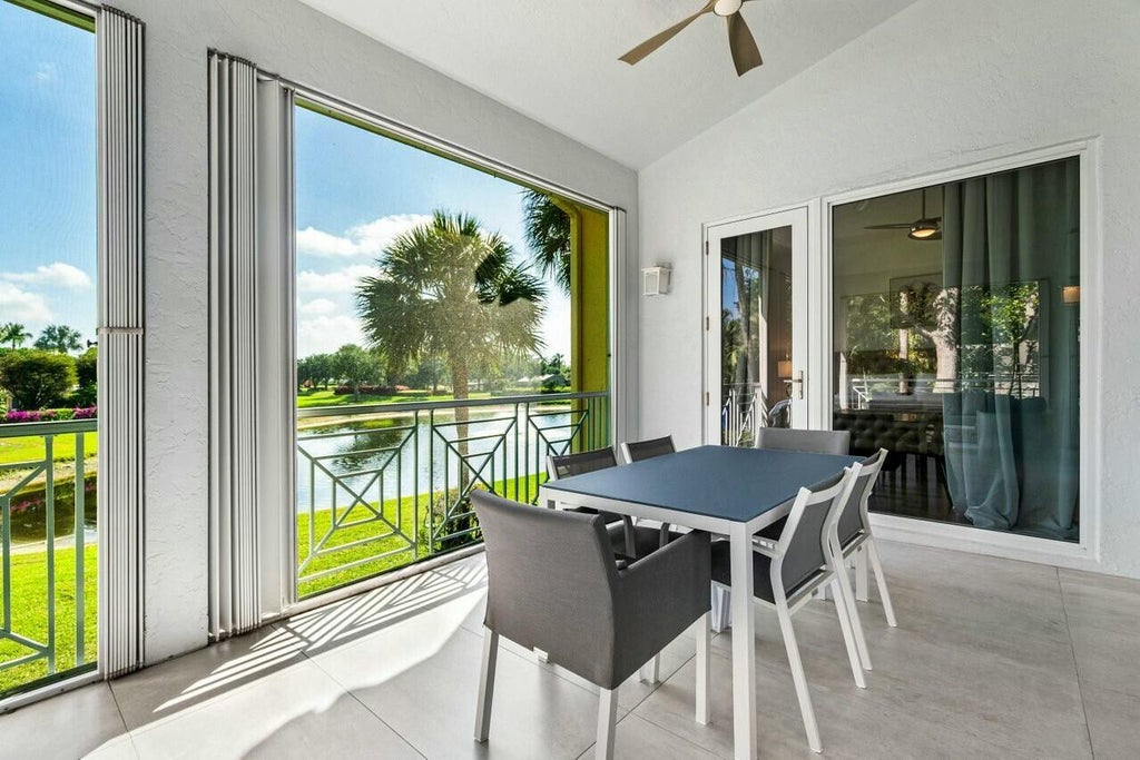 Stunning and completely renovated, second floor corner condo in The Palms community of Ballenisles. This amazing 3 bedroom plus den, 2.1 Bathroom is being offered turnkey fully furnished with a private elevator, breathtaking lake views and over 2300 sq ft of living space. Enjoy the volume ceilings, sun-lit great room, beautiful Quartz counters in the Kitchen, tasteful tile and wood flooring, formal dining room and custom eat in kitchen. Prepare to be impressed by the stone and plank details highlighted in the living areas. This unit also boasts a screened in oversized wrap around balcony showcasing magnificent lake views and phenomenal daily sunrises. Your private elevator from garage allows easy access to the 2nd floor.