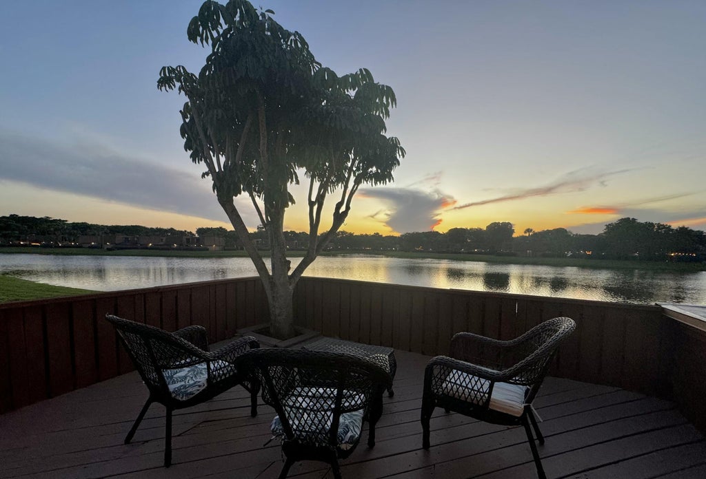 Rare find! The ONLY property available in the community with a raised deck and breathtaking lake view! Stellar for entertaining! Pristine Olympic-sized pool, basketball, racquetball & tennis courts! Fantastic natural light through four sets of sliding glass doors. Gorgeous modern light fixtures, freshly painted walls, new carpeting upstairs, new toilet, sink & vanity in downstairs bath. Primary bedroom feat. sleek remote-control blinds. Bedrooms feat. private balconies overlooking the patio & lake. Comparably low HOA incudes free cable TV, lawncare, & building insurance. Family & pet friendly. Public schools less than a mile away. Tall, gorgeous trees lining the easily walkable residential streets. 10-min drive to the beach. Walkable to LA Fitness, restaurants, shops, & more!