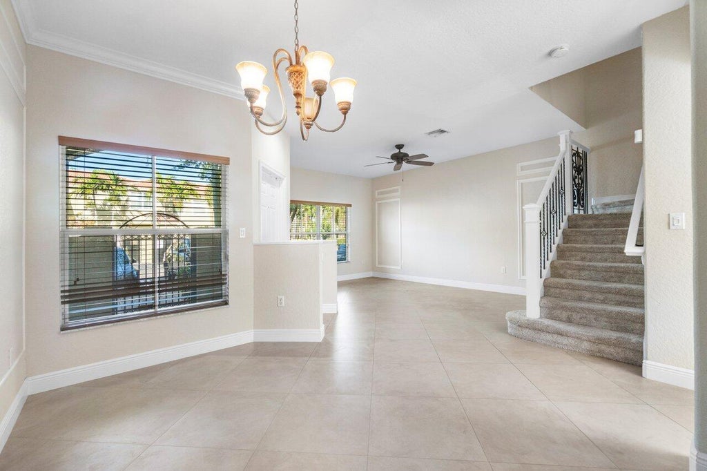 This mediterranean style home in the gated community of Monterey Bay. Step into this charming courtyard with a welcoming foyer bright and airy in the middle of the living room and dining room. Features to note recessed lighting, wrought iron staircase, wainscoting panels and crown molding. Bright and airy family room overlooking the water cozied up next to the kitchen with a chef's island. Step outside to the serene outdoor patio with lush landscaping views. Upstairs you will find a split floor plan, office and impact windows. Step in the primary overlooking the elongated lake, other features a soaking tub, dual sinks, and expansive walk-in closet. Bedroom two has an on-suite bath and grab closet. Community has a resort style pool just minutes from downtown Delray.