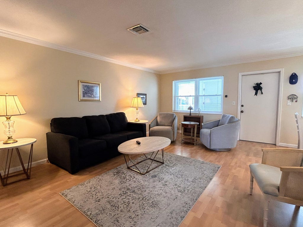 RARE 2 BEDROOM/1 BATH CONDO ON 3RD FLOOR W/ ELEVATOR, OCEAN BREEZES AND VIEWS OF VILLAGE'S PROMENADE AND INTRACOASTAL. ALL CONCRETE BUILDING, UPGRADED WINDOWS AND ACCORDION SHUTTERS PROTECT FROM HURRICANES. PASSED ALL REQUIRED STATE INSPECTIONS AND RESERVE STUDIES. CONDO IS TASTEFULLY DECORATED WITH FURNITURE THAT IS INCLUDED. REMODELED KITCHEN IS OPEN CONCEPT, HAS PENDENT LIGHTING, GRANITE COUNTERS AND LOTS OF STORAGE IN WHITE CABINETS. WHITE APPLIANCES INCLUDE SMOOTH TOP RANGE, FRIDGE, BUILT IN MICROWAVE AND DISHWASHER. UPGRADED ELECTRIC PANEL, WALK IN SHOWER, WASHER AND DRYER AND CUSTOM-BUILT EXTRA STORAGE ABOVE CLOSETS ARE SELDOM FOUND IN OTHER UNITS. CLUBHOUSE RENO IS STATE OF THE ART. INCLUDES FITNESS CENTER, 24 HR LAUNDROMAT, REVAMPED POOL BATHS AND SHOWERS, LIBRARY, (CONT PG 2)..