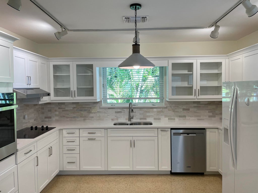 Beautifully updated home in the Heart of the Barrier Island. Short walk to the beach and Atlantic Ave restaurants, shops and entertainment. New Improvements: all new kitchen cabinets, Caesar Stone counters, marble tile backsplash. New appliances. New lighting. Bathroom improvements: New vanities, new sinks, the water closets, new shower in Master, new glass enclosures, new lighting. Beautiful cream terrazzo has been restored and polished. Located in one of the most special hideaway neighborhoods on the island!