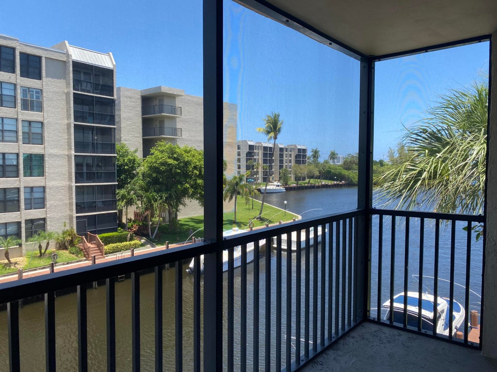 WATERFRONT GEM IN BOCA BAYOU! Stunning views of boats passing by from this end unit offering privacy and extra window showcasing water vistas. Deluxe split floor plan with ceramic tile throughout. Primary suite features spacious bath and walk-in closet. Enjoy coastal breezes from screened balcony. Gated community includes water, trash and Xfinity cable w/HBO. Amenities: 5 pools, tennis courts and boat dockage. Just 5 mins to beach, Mizner Park and Royal Palm. Don't miss this waterfront opportunity!