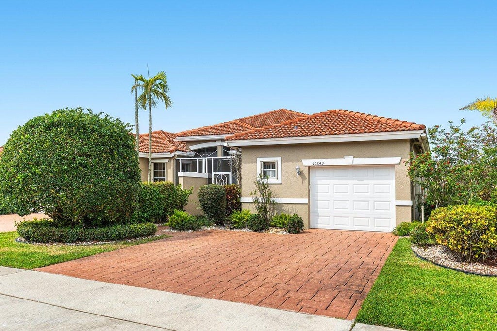 No Assessment!!! Experience resort style living in this gated adult community. Expansive waterfront views in this villa, offering 3 bedrooms, 2 bathrooms, and a private garage with widened driveway. This freshly painted home boasts a welcoming open floor plan with a spacious eat-in kitchen, convenient inside laundry, and inviting dining and living areas. Step outside to a covered, screened patio that overlooks a serene lake perfect for unwinding and enjoying the peaceful surroundings. Accordion shutters on every window provide easy storm protection for peace of mind.Just a short stroll away, the newly redesigned clubhouse awaits, featuring a temperature-controlled pool and jacuzzi, a fully equipped fitness center, saunas, steam rooms, billiards and card rooms, an