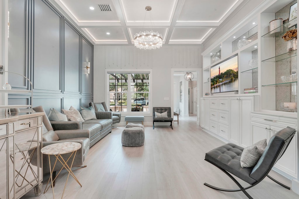 Experience unparalleled luxury in this 'like new' masterpiece, nestled within the beautiful Paseos community, right in the heart of Jupiter. Boasting SE exposure and backing onto a tranquil preserve, this home is your private sanctuary--a true retreat from the everyday. Step into your own tropical haven, where a resort-inspired pool with a sun shelf and waterfall features shimmer beneath the Florida sun, enhanced by pebble and glass tile finishes. This outdoor oasis is designed for living: a spacious covered and screened patio invites you to savor morning coffee, unwind with a book during gentle rain, or catch the big game.