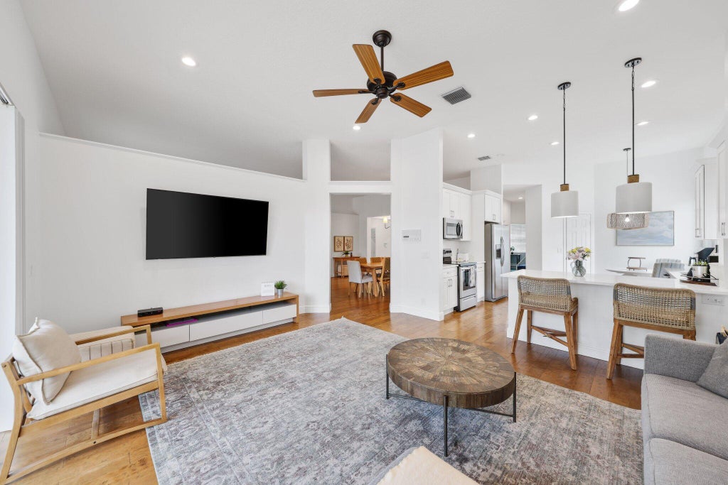 Welcome to this beautiful home located in the highly sought-after Boca Falls community, where luxury meets convenience. BRAND NEW ROOF. Situated in a safe and peaceful cul-de-sac, this property is nestled on a spacious lot, offering the trifecta of outdoor living: a screened-in patio, expansive pool deck with a pool, and a generous backyard perfect for entertaining family and friends.As you step inside, you'll be greeted by a light-filled, open floor plan with soaring high ceilings and an abundance of natural light. The split floor plan provides both privacy and functionality, with dual living and family rooms, as well as a formal dining area - ideal for hosting gatherings or quiet evenings at home.