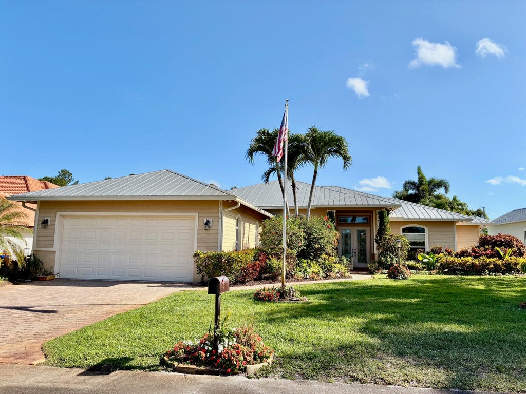 On the edge of Tequesta, find a private Coastal Sanctuary tucked away on a quiet street dead ending at the untouched beauty of Jonathan Dickinson State Park. This custom concrete-built home offers the perfect blend of natural serenity and comfort. Designed with an open-concept layout and soaring volume ceilings throughout, the interior feels expansive and airy. A standing seam metal roof, paver driveway and patio, and lush native landscaping create timeless curb appeal, while a screened pool and spa area invite you to relax and soak in the tranquil surroundings. Wildlife lovers will appreciate the abundant Florida birds, deer and other native species that frequent the area. A rarely used quaint park with basketball court is just across the street