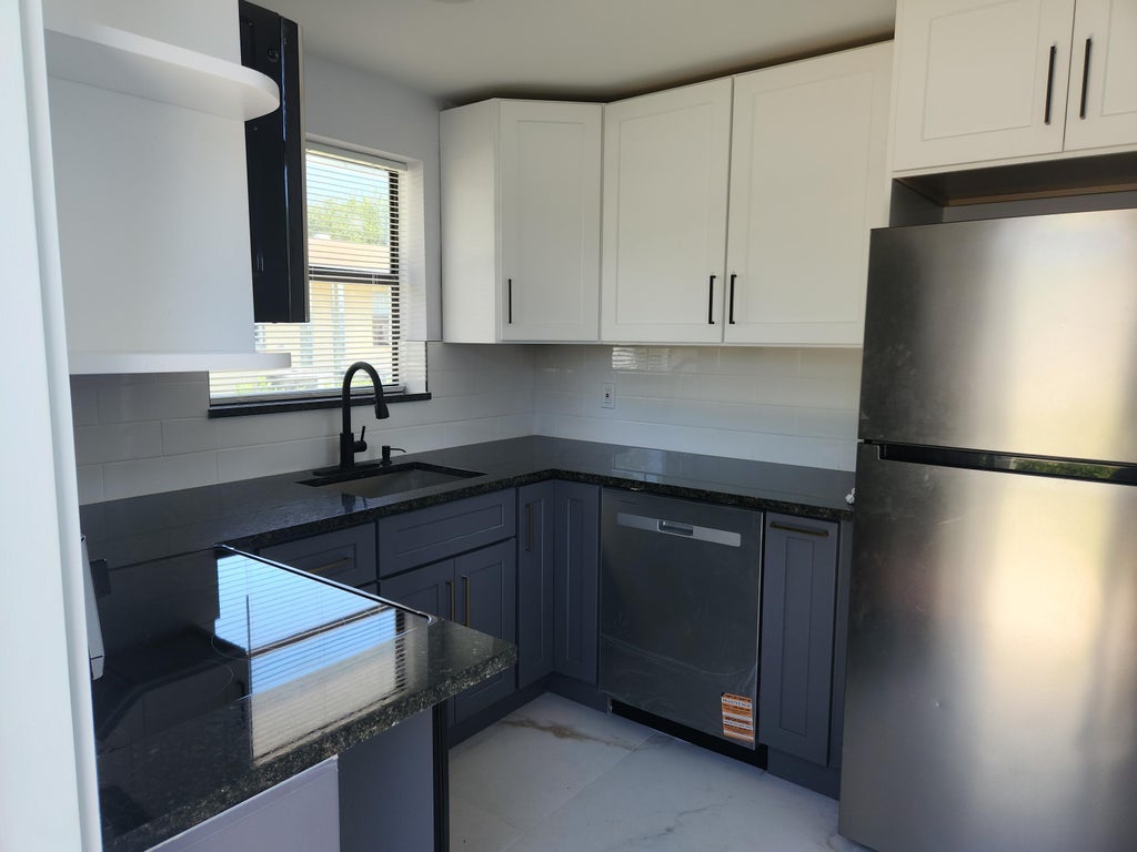 Totally Renovated!! New Appliances!! 2 bedrooms & 1 full bath. open concept kitchen and living space with LED lighting, porcelain tile flooring, all brand new appliances, Washer and Dryer & cabinetry plus granite countertops, offering a contemporary elegance with a touch of classic charm. This unit has a private driveway. Minutes to i-95, 1/2 mile to the beach & just a couple of blocks to all the shops & cafes in Downtown Delray. Immediate occupancy