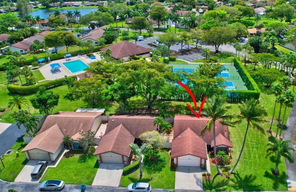 Exceptional value in Boynton Lakes! 4BR/2BA home with 2-car garage on a spacious corner lot directly backing the community pool, tennis, park & playground. Enter through your private screen porch. Features an open floorplan with cathedral ceilings, tile floors, and a kitchen with stainless appliances, eat-in area & breakfast bar. Versatile 4th BR with closet & window currently used as an open office and easily made into a guest room. Full size washer/dryer. Large covered screen patio runs the back of the home for additional living space. Fenced side yard with deck. Low HOA includes lawn care, clubhouse, pool, sauna, tennis, pickleball & walking paths. Minutes to I-95, beaches, shopping, restaurants & downtown. Priced below market--great for investors or buyers ready to make it their own!