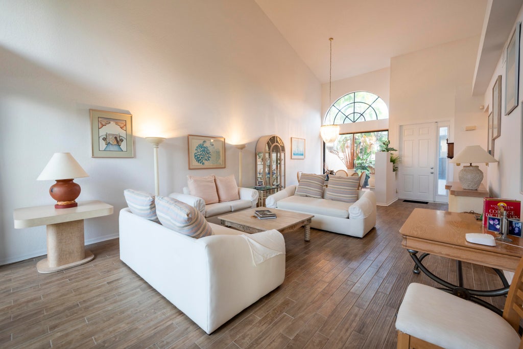Welcome home to this beautiful 3/2.5 townhouse in the highly desirable community of Monterey Lake. This home presents beautifully showcasing neutral tones throughout, ceramic tile flooring, dramatic vaulted ceiling in the great room with a formal dining area and views of the lake from a covered patio. The recently remodeled kitchen includes a lounge area, stainless appliances, butcherblock countertops, bay window and door-wall leading to a private outdoor courtyard. Everyone loves a 1st floor primary Ensuite and this townhome has it! The bedroom connects to a spa bathroom with dual sinks, modern shower system with rain-showerhead, and freestanding soaking tub with floor-mounted faucet. Upstairs you'll find two more bedrooms, another remodeled full-size bathroom and plenty of closets!