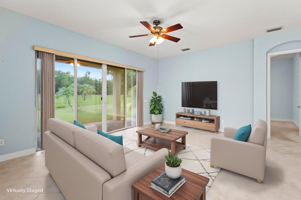 1877 Falcon Trace is available now and waiting for your personal touches. Located in beautiful Falcon Trace, the community amenities include a resort style pool, gym, tennis, and basketball. This home has a functional split layout and high ceilings. With almost 2000 sq ft of living space, there is room for everyone! The open kitchen has ample cabinet space and a large pantry. Modern stainless steel appliances. Interior laundry room for convenience. Large owner's suite with two walk-in closets. The ensuite bath features dual vanities, a garden tub, and separate shower. Brick paver driveway and covered rear patio with room to grill or relax in the Florida breeze. Carpet in the bedrooms and tile throughout the rest of the home. Full accordion shutters. A/C and W/H are 2017