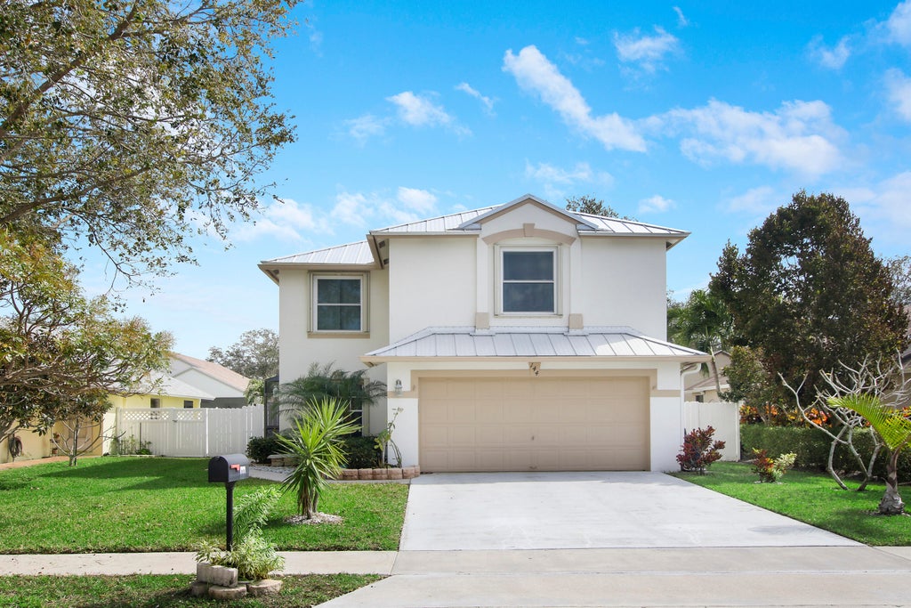 MOTIVATED SELLER! Discover the perfect place to call home in the desirable community of Pennock Landing in Jupiter! This inviting 4-bedroom, 3 FULL bathroom CBS home has a 2-car garage, newer metal roof and offers a blend of comfort and functionality. Step inside to find a spacious living and dining area highlighted by vaulted ceilings and impact sliding glass doors that open to a covered back patio, ideal for relaxing or entertaining.The kitchen has been updated, featuring new shaker cabinets, new countertops, a built-in desk, a full-size pantry, and a large working sink, complemented by newer appliances. Enjoy meals in the eat-in kitchen while overlooking the private outdoor space. Upstairs, there are 3 spacious bedrooms and 2 bathrooms. Another bedroom plus laundry are located