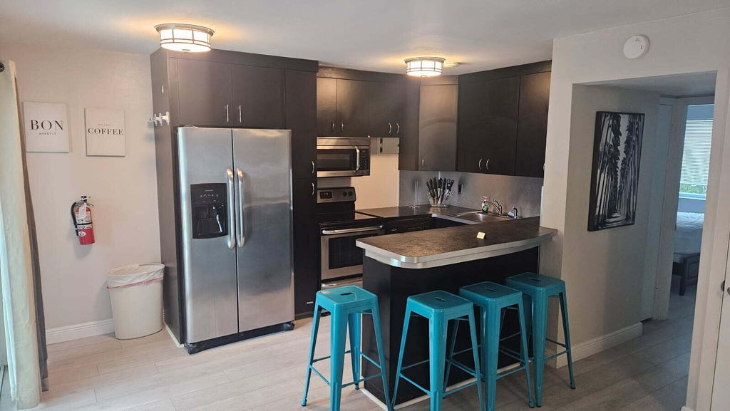 Fully furnished turnkey 2/1.5 unit on second floor of a two story building. Newly decorated and ready to move in with just your personal belongings. The unit is directly on the intracoastal and has an outdoor seating area for relaxing and is minutes from the ocean, dining, shopping, downtown Palm Beach and PBI.