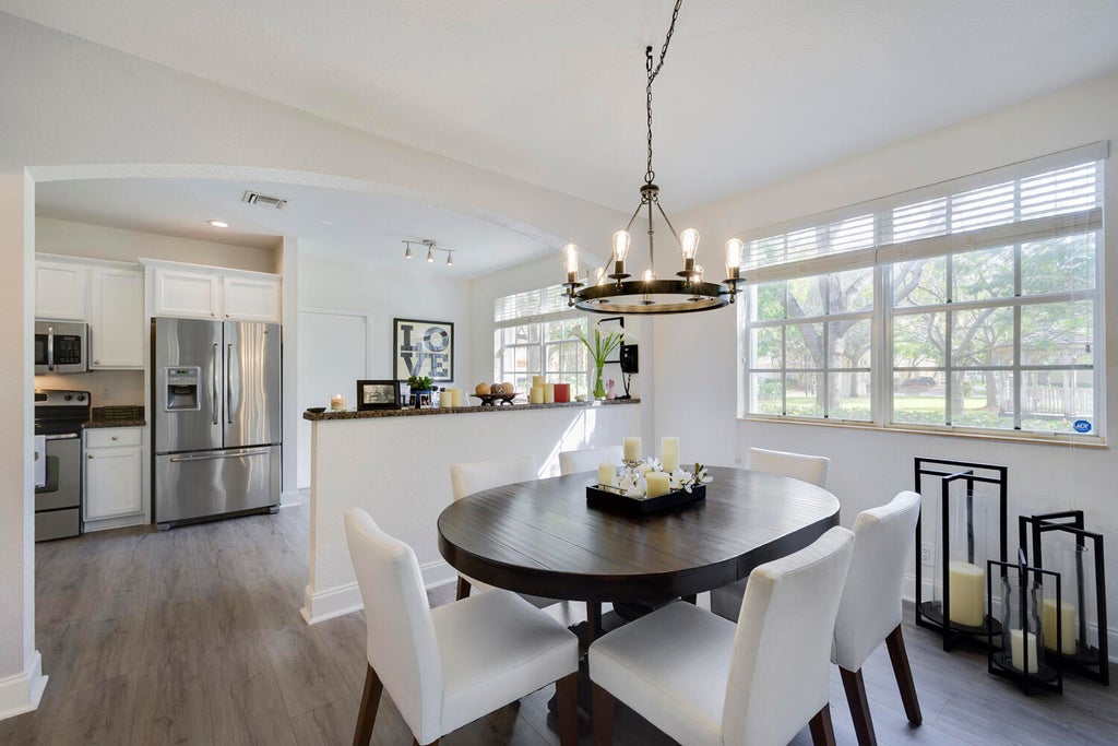 Welcome to this stunning manor townhome, perfectly situated in the most sought-after location, overlooking a beautiful park with serene southern-shaded exposure. Nestled in a family-friendly community, this home offers a peaceful retreat while being just moments away from everything you need.Designed with Pottery Barn-inspired charm, this home seamlessly blends style and comfort. The open-concept layout boasts luxury vinyl flooring throughout and has been freshly painted, offering a modern and inviting atmosphere. Furniture is included on the sale. the thrid bedroom converted into an office or den, this home provides ample space for relaxation, entertaining, safety and convenience are top priorities, with a brand-new hurricane-rated garage door and shutters.