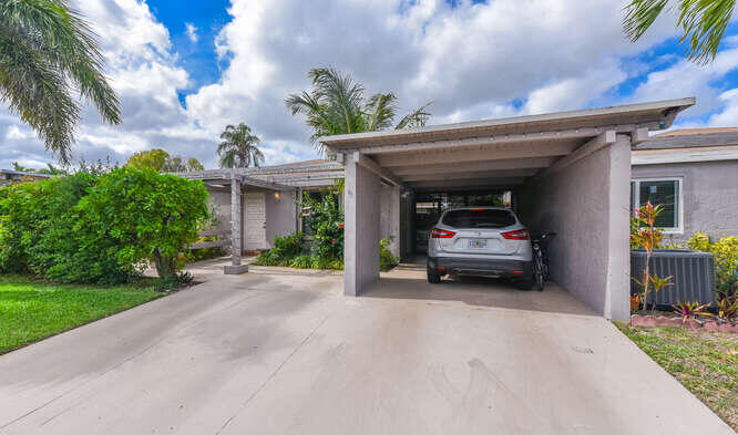 Welcome to this beautifully updated villa in Camelot Village. This comfortable & spacious 2 bedroom 2 bath home incorporates flexible indoor and outdoor spaces for your south Florida enjoyment. This home features updating throughout including quality engineered laminate wood flooring, newer kitchen cabinetry and granite, newer baths & so much more. Also featuring accordion shutters, storage, carport with an extra parking space. The community features a beautiful pool & hot tub, clubhouse, workout room, tennis, pickleball, shuffleboard. Camelot village is conveniently located in Delray Beach close to shopping, restaurants, beaches and more.