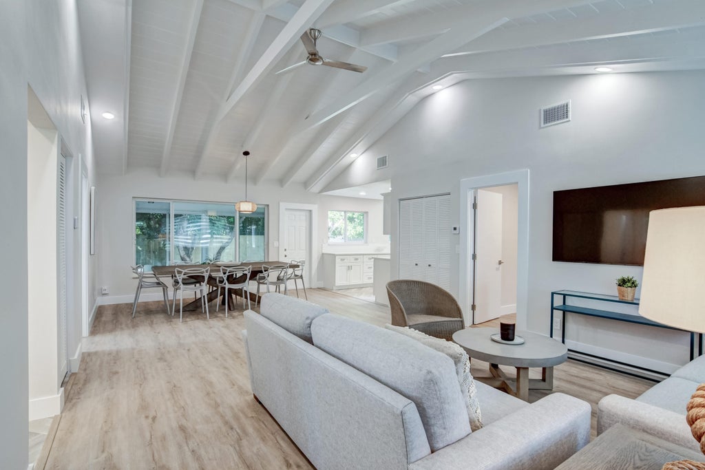 New Pool Coming Soon! Serene, Sunlit 3-Bedroom Home with Office Space & Garden Oasis - Fully Furnished in Prime Delray Beach. Available for 30 day min.Step into this lovingly renovated 3-bedroom, 2-bath sanctuary, where high vaulted ceilings and sun-drenched spaces welcome you with warmth and light.Located in a peaceful neighborhood of Delray Beach, this fully furnished single-family home offers not just comfort, but a place to truly feel at home.The open-concept layout flows effortlessly from the spacious living room to a modern kitchen with quartz countertops, stainless steel appliances, and stylish cabinetry--perfect for cooking, hosting and enjoying everyday life.The private primary suite feels like a retreat, featuring its own