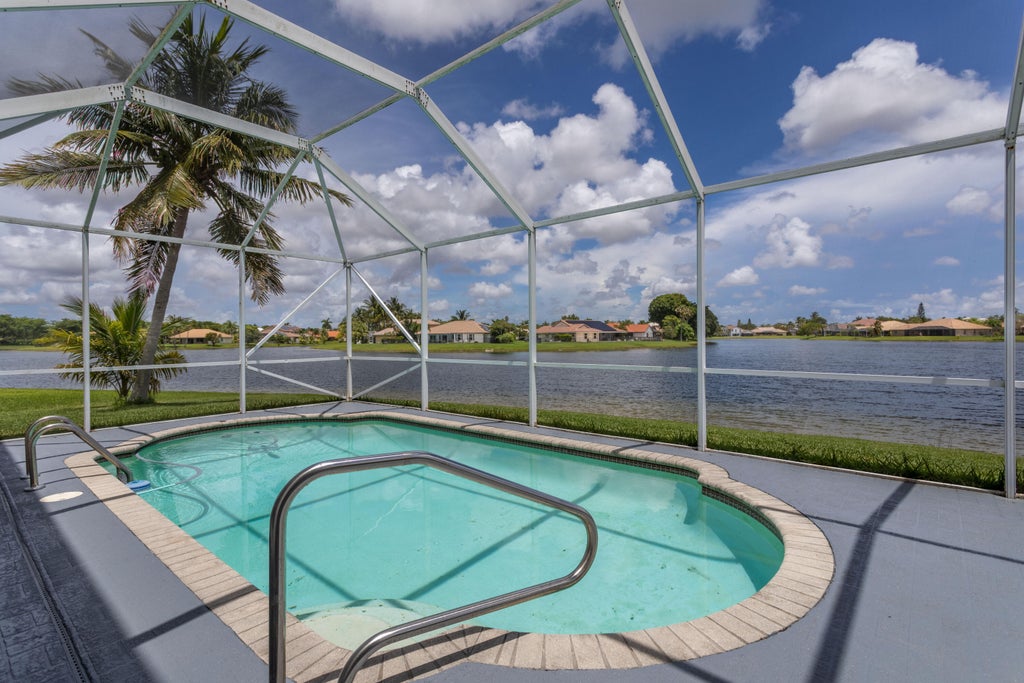 This five bedroom rental comes with a spectacular million dollar view. This is one of the best locations in all of Boca Winds. Situated on a cul-de-sac pie shaped lot with big side yards right on the water. Enter the home to a very open floor plan that looks right out into the Long Lake view. Enjoy your sparkling screened pool and enjoy these incredible views. Master bedroom and three others are upstairs and one bedroom is downstairs. Master bedroom has 2 walking closets .Hurricane shutters. 'A' rated schools and south country park.