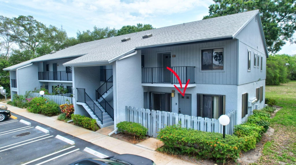 Great floor plan, great location! Original owners estate is selling this 2 bedroom, 2 bath first floor condo. No age restriction and zoned for great public schools! Huge 19x9 front fenced patio plus storage closet. Also has a 13x8 covered, screened porch in back that looks out on a large green space. Big walk in closet in the primary bedroom plus full bath with a step in shower. Long term tenant just moved out to accommodate the sale. Some TLC/handyman updates could make this place a dream! Pet friendly neighborhood! Hurricane ready with complete accordion shutters for piece of mind and easy storm prep! Heated community pool. Very quiet area and only 1/2 mile to I-95!